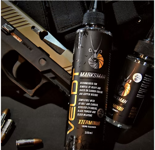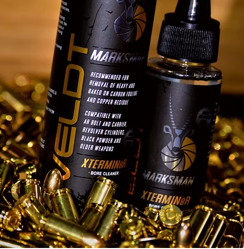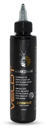 XTERMIN8R is formulated to chemically act on heavy layers of carbon, copper, nitro, moly and lead and is one of the best all-round cleaners in the VELDT MARKSMAN arsenal. The carefully selected balance of chemicals acts fast and suspends residual unwanted ions, containing them in the solvent without hampering the effectiveness of the cleaning process. Ammonia and acetone free with a candy scent, the XTERMIN8R might smell gentle but packs a knockout punch when it comes to removing unwanted residue and fouling. Fast, quick, reliant and to the point cleaning for the next generation rifleman.