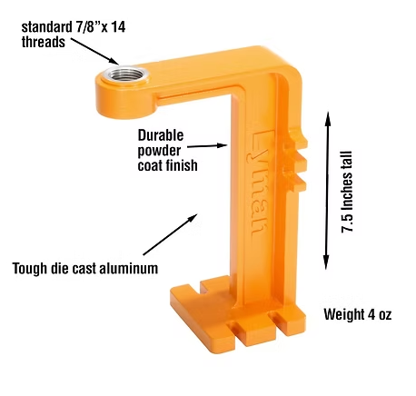 Lyman listened to the suggestions of our customers and have redesigned our powder measure stand. The new Brass Smith Powder Measure Stand can be mounted firmly to either a bench top or to a wall. Features standard 7/8”x 14 threads and will raise any measure high enough to easily position cases beneath the powder drop tube. Made of tough die cast aluminum.